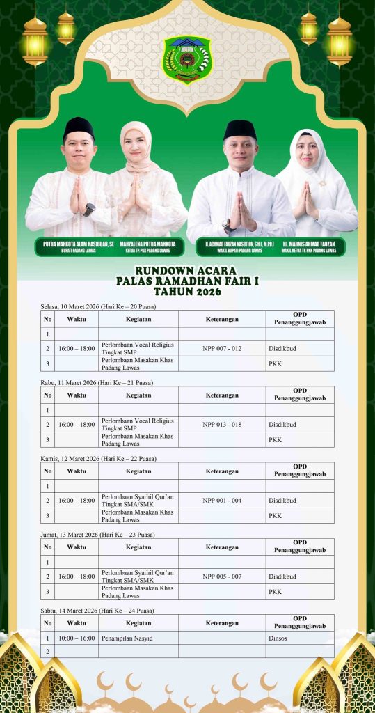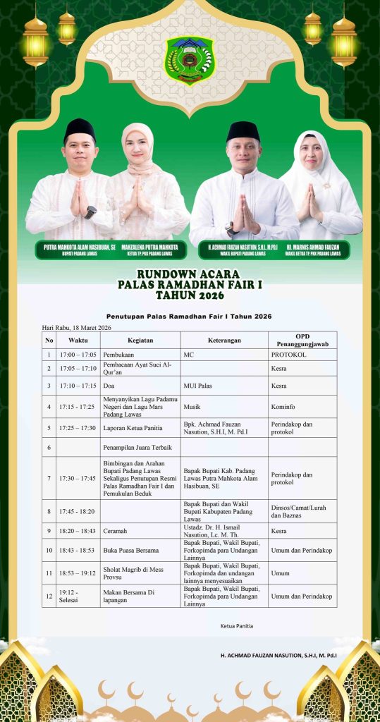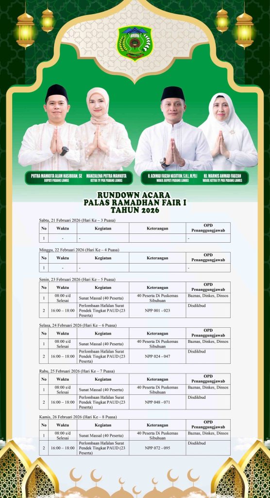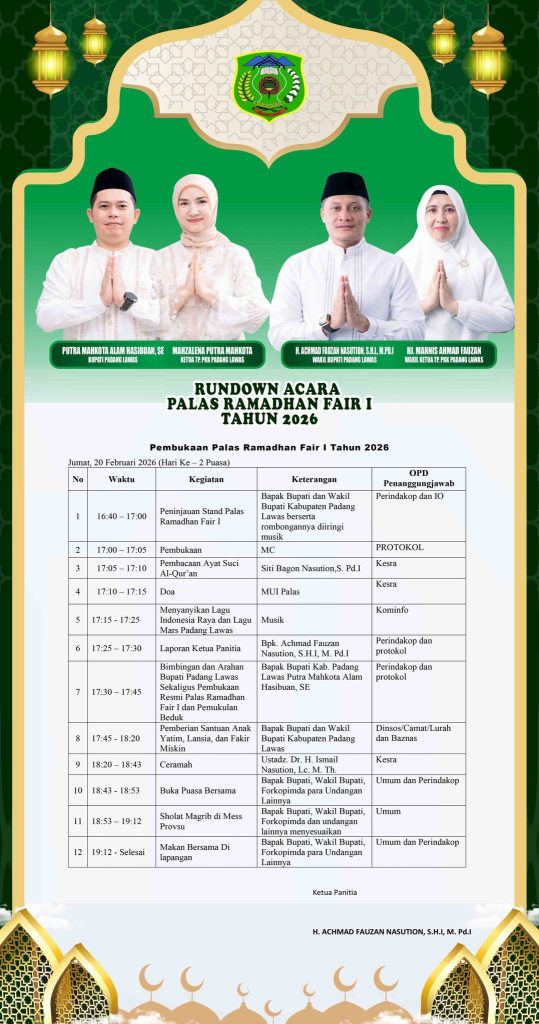 Bupati Padang Lawas Putra Mahkota Alam Hasibuan SE bersama Wakil Bupati Padang Lawas H. Achmad Fauzan Nasution, S.H.I., M.Pd.i meninjau langsung persiapan pembangunan stand dan penataan lokasi Ramadhan Fair di depan Lapangan Polsek Barumun. Rabu (18/02/26).