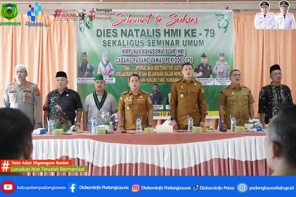 Bupati Padang Lawas Putra Mahkota Alam Hasibuan SE menghadiri Acara Peringatan Milad Himpunan Mahasiswa Islam Ke-79 Tahun dan sekaligus dilaksanakannya Seminar umum untuk siswa/siswi SMKN 1 Barumun. Selasa 10 Februari 2026.