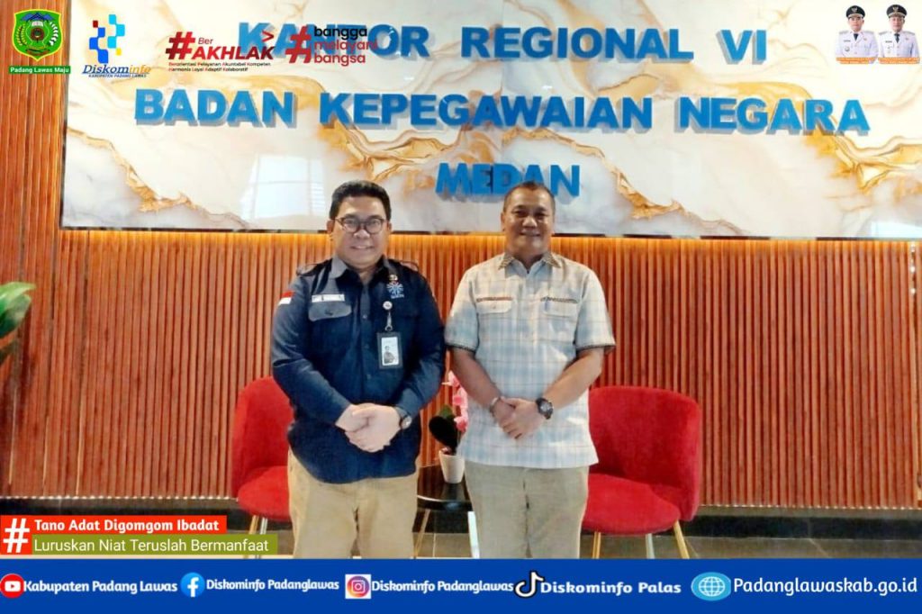 Pj Sekda Padang Lawas H. Panguhum Nasution S.Sos, M.AP, bersilaturahmi ke kantor Regional VI BKN medan dan di sambut hangat oleh Kakanreg BKN Medan Dr. Janry H.U.P. Simanungkalit, S.Si., M.Si. Selasa (13/01/26).