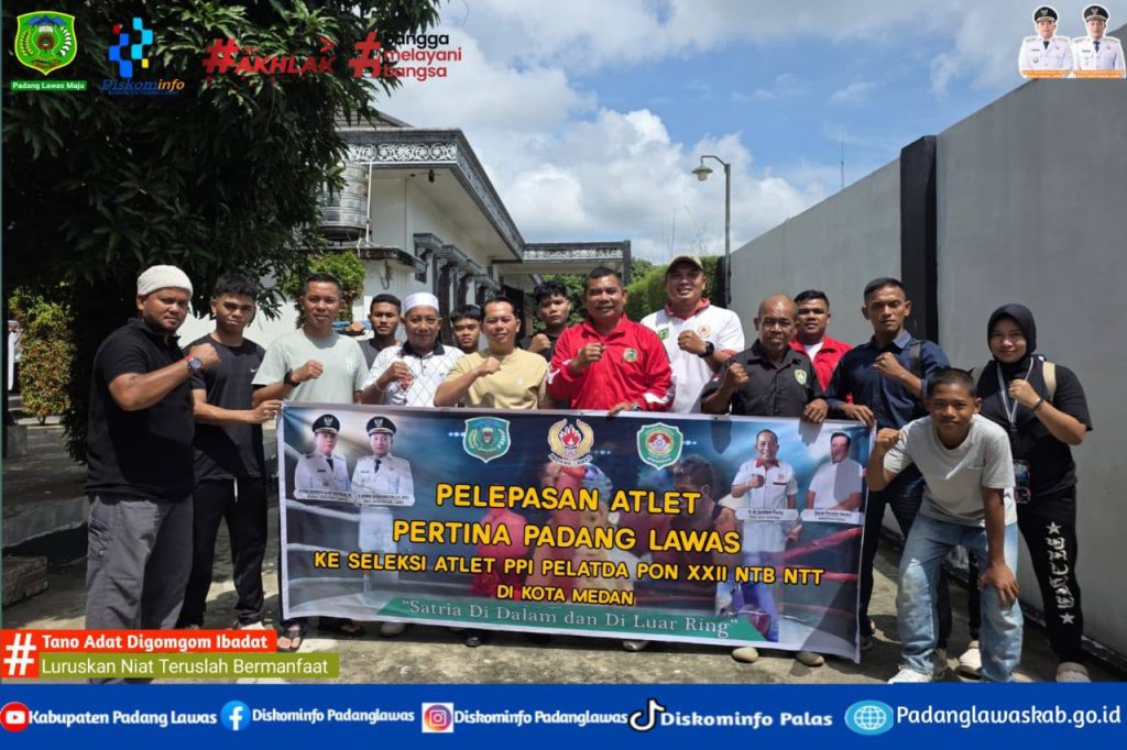 Sabtu (10/01/26). Bupati Padang Lawas Putra Mahkota Alam Hasibuan SE memberangkatkan Atlet Pertina Kabupaten Padang Lawas ke seleksi Program Pembinaan Intensif (PPI) Pelatda PON XXII NTB-NTT di Kota Medan di mulai pada Tanggal 12-15 Januari 2026 mendatang.